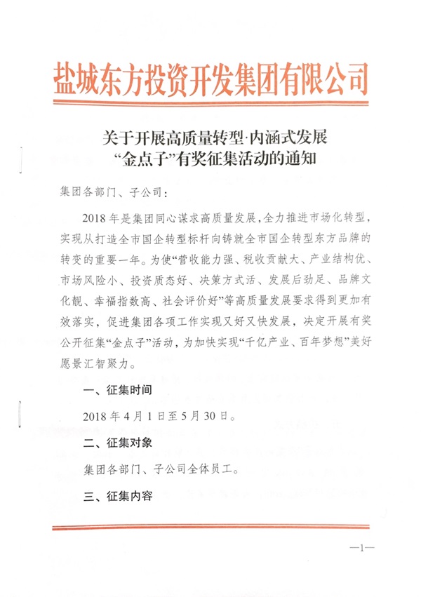 2018年是東方集團(tuán)同心謀求高質(zhì)量發(fā)展,全力推進(jìn)市場(chǎng)化轉(zhuǎn)型,實(shí)現(xiàn)從打造全市國(guó)企轉(zhuǎn)型標(biāo)桿向鑄就全市國(guó)企轉(zhuǎn)型東方品牌的轉(zhuǎn)變的重要一年。如何使“營(yíng)收能力強(qiáng)、稅收貢獻(xiàn)大、產(chǎn)業(yè)結(jié)構(gòu)優(yōu)、市場(chǎng)風(fēng)險(xiǎn)小、投資質(zhì)態(tài)好、決策方式活、發(fā)展后勁足、品牌文化靚、幸福指數(shù)高、社會(huì)評(píng)價(jià)好”等高質(zhì)量發(fā)展要求得到更加有效落實(shí),是擺在東方集團(tuán)面前最重要的課題。為此,該集團(tuán)決定以解放思想、凝聚智慧作為破解上述課題的重要抓手, 組織動(dòng)員集團(tuán)各部門、子公司全體員工立足自身崗位實(shí)際集思廣益、建言獻(xiàn)策,共同思考和探索集團(tuán)高質(zhì)量發(fā)展的良策。