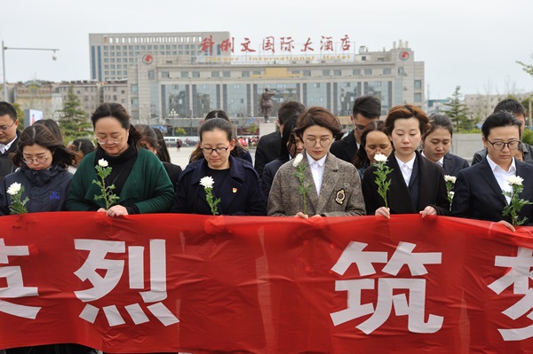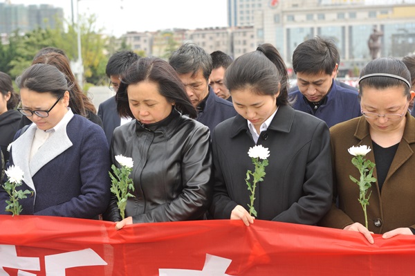 圖為集團(tuán)員工們向革命烈士默哀三分鐘,表達(dá)對革命先烈的緬懷和敬仰之意。