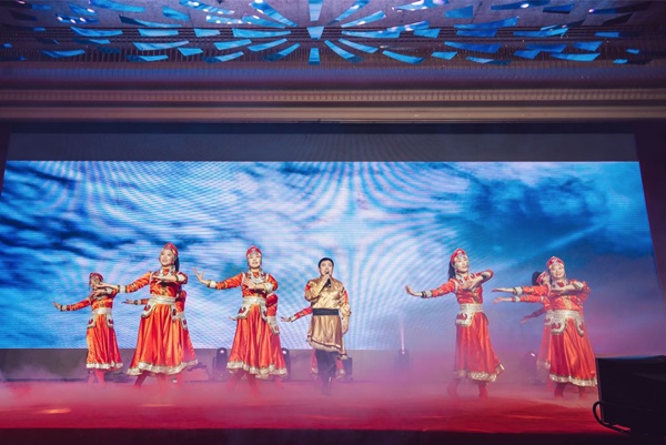 歌伴舞《草原上升起不落的太陽》婉轉(zhuǎn)動(dòng)人的曲調(diào)讓臺(tái)下觀眾猶如置身廣闊無垠蒙古大草原,體味到了草原民族熱情好客、自由奔放的風(fēng)情韻味……