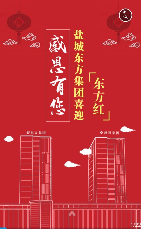 聯(lián)歡會(huì)最后,《感恩有你 鹽城東方喜迎“東方紅”》的H5輕應(yīng)用以其新穎的表現(xiàn)方式、美好的新年展望、熱忱的新年祝福,讓東方員工倍覺親切、深受鼓舞,紛紛在朋友圈熱情轉(zhuǎn)發(fā)。