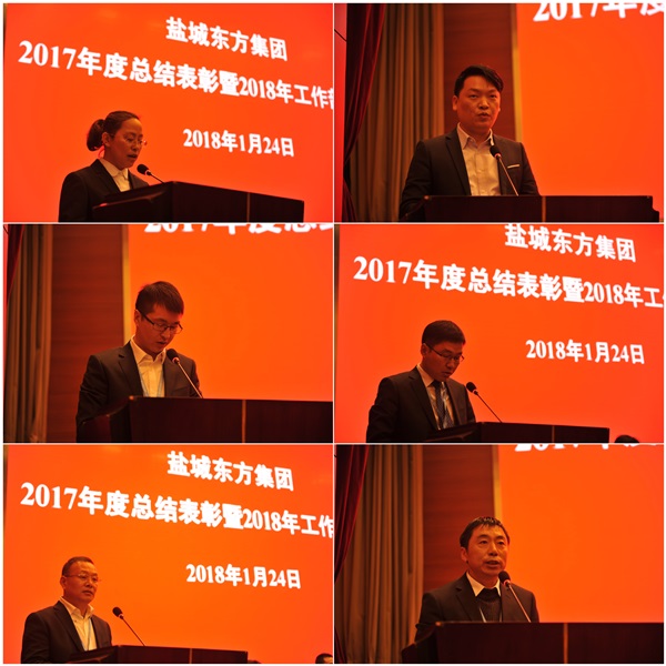 會(huì)議對(duì)15個(gè)先進(jìn)集體和25名先進(jìn)個(gè)人進(jìn)行了表彰;播放了東方集團(tuán)2017年發(fā)展回眸、2018年工作展望專題片《轉(zhuǎn)型創(chuàng)新東方紅》;6名集團(tuán)員工代表從不同層面作了表態(tài)發(fā)言;集團(tuán)班子成員依次向張振國遞交黨的建設(shè)責(zé)任書、安全生產(chǎn)責(zé)任書。
