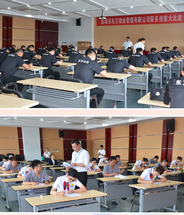 為了展示一線員工專業(yè)技能水平、專業(yè)知識(shí)和精神風(fēng)貌,通過互相觀摩,激發(fā)員工苦練內(nèi)功、服務(wù)用戶的熱情,在公司形成“比、學(xué)、趕、超”的工作氛圍,鹽城市東方物業(yè)管理有限公司于6月25日、26日在東方科技城舉辦了2018年度服務(wù)技能大比武活動(dòng),來自各工種的100多位選手參加了比賽。此次比賽本著實(shí)用原則,通過筆試和實(shí)操環(huán)節(jié),按物業(yè)服務(wù)的四個(gè)板塊設(shè)置比賽項(xiàng)目。