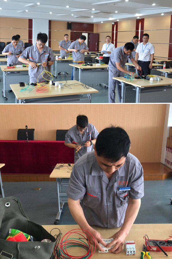 零散的工具、整捆的線路和開關(guān)......工程人員個(gè)個(gè)心靈手巧,活用賽場(chǎng)的每一種工具。比賽項(xiàng)目重重考驗(yàn)著現(xiàn)場(chǎng)選手的耐心和毅力。只見每位選手都屏息凝神、專心致志。值得稱贊的是,與其說這是一場(chǎng)比武,倒更像是一場(chǎng)技能展示和成果檢驗(yàn)。