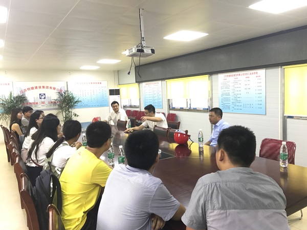 圖為未來科技城項目部負(fù)責(zé)人向新員工介紹項目基本情況
