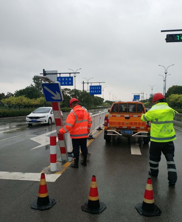 安通公司為保證開發(fā)區(qū)道路通暢,加班修復(fù)因強(qiáng)風(fēng)暴雨而造成的護(hù)欄倒伏、爆閃燈損壞等情況。22日下午修復(fù)了五臺山路、希望大道等路段的護(hù)欄。當(dāng)天晚上所有員工加班加點值班巡查,一有發(fā)現(xiàn)損壞,及時修復(fù)。所有員工奮戰(zhàn)到次日凌晨,截至目前,仍繼續(xù)巡查開發(fā)區(qū)所有路段。