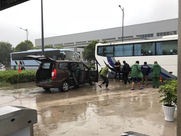 圖為臺風(fēng)來臨前組織項目部施工人員疏散撤離