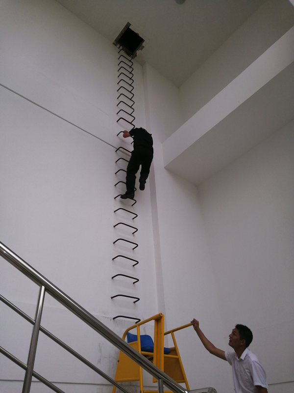 圖為東方物業(yè)工作人員檢查企業(yè)屋頂情況