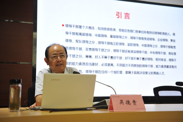 講座中,吳德貴教授以淵博的知識,從研究干部人事管理實務和政策理論出發(fā),堅持理論與實踐相結(jié)合,圍繞領(lǐng)導力與執(zhí)行力簡析、領(lǐng)導力建設(shè)六個基本、執(zhí)行力建設(shè)六項建議等三個方面內(nèi)容,深入淺出地闡述了領(lǐng)導干部、中層干部所應該具備的能力,以及提升執(zhí)行力的六項修煉等。