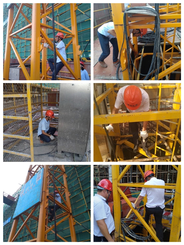 9月23日上午,檢查組一行先后來到北師大附校初高中部,東方之洲B9、C4C7,悅欣花園幼兒園、住宅樓,東方污水處理廠,未來科技城二三期等共7個施工項目部,針對塔吊的地腳螺栓、標(biāo)準(zhǔn)節(jié)螺栓、頂升平臺連接銷軸、起升鋼絲繩、回轉(zhuǎn)限位器、起重量限制器、電氣線路等安全性能進(jìn)行了詳細(xì)的檢查。