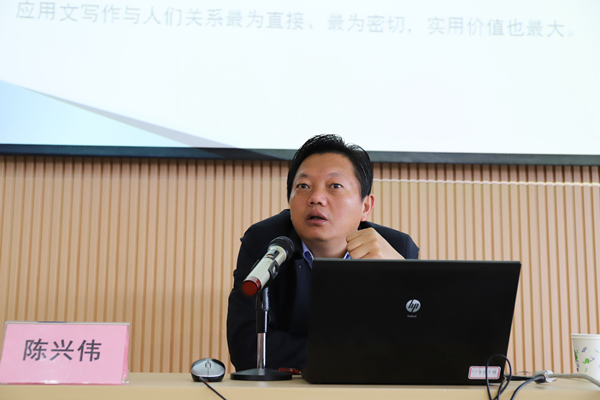 首先陳教授簡(jiǎn)單介紹了應(yīng)用文的分類等基本常識(shí),讓培訓(xùn)員工了解到應(yīng)用文的重要性。后著重就“請(qǐng)示”“匯報(bào)”和“總結(jié)”等員工們工作中運(yùn)用較多的應(yīng)用文寫作格式和方法,結(jié)合具體范例,做了詳細(xì)講解,并與員工進(jìn)行了寫作方法交流。