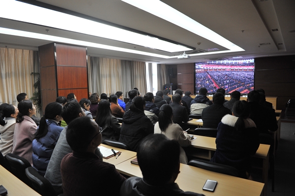 直播過程中,大家聚精會神,認真收看,記錄講話要點。習近平總書記的重要講話,全面回顧了改革開放40年的光輝歷程,深刻總結(jié)了改革開放的偉大成就和寶貴經(jīng)驗,高度贊揚了中國人民為改革開放事業(yè)作出的杰出貢獻,鄭重宣誓了改革開放只有進行時沒有完成時、改革開放永遠在路上的信心和決心,明確提出了堅定不移全面深化改革、擴大對外開放、不斷把新時代改革開放繼續(xù)推向前進的目標要求。講話統(tǒng)攬全局、內(nèi)涵豐富,鼓舞人心、催人奮進。