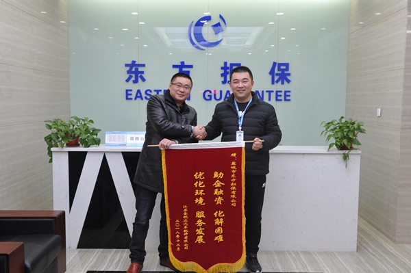 12月21日,江蘇金銳達(dá)汽車配件有限公司財務(wù)負(fù)責(zé)人吳益明一行,將一面寫著“助企融資 化解困難 優(yōu)化環(huán)境 服務(wù)發(fā)展”的錦旗送到鹽城市東方擔(dān)保有限公司辦公室,感謝東方擔(dān)保為該公司提供融資上的幫助以及優(yōu)質(zhì)的服務(wù)。
