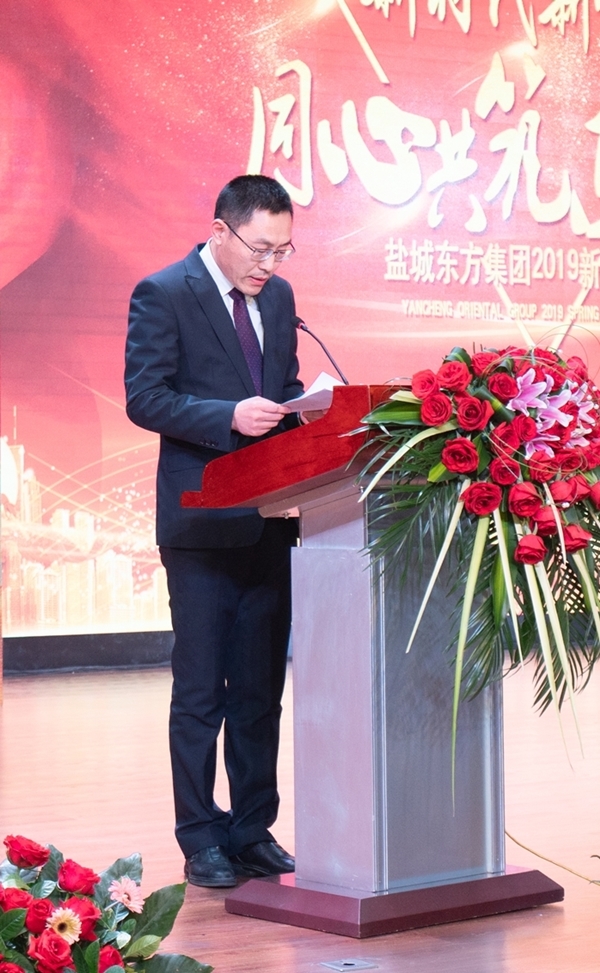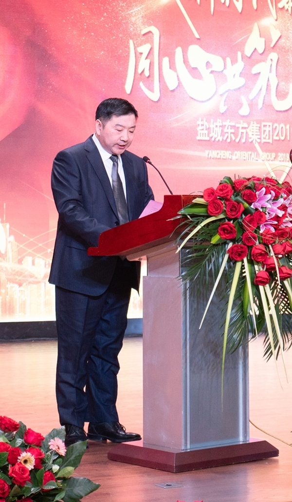 鹽城東方集團(tuán)黨委書記、董事長(zhǎng)張振國(guó)發(fā)表新年致辭。