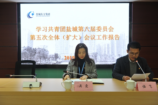 為及時傳達(dá)學(xué)習(xí)貫徹市委八屆五次全體(擴(kuò)大)會議精神, 2月15日上午,鹽城東方集團(tuán)團(tuán)委在1012會議室召開會議,專題傳達(dá)學(xué)習(xí)市委八屆五次全體(擴(kuò)大)會議精神,團(tuán)委書記吳霞主持會議并講話,團(tuán)委副書記任飛、全體委員、青年員工40余人參加會議。