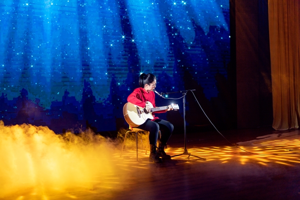 頒獎晚會在喜慶的舞蹈《打開春天》中拉開帷幕,歡快奔放的曲調(diào),婀娜多姿的舞姿迅速點燃了現(xiàn)場氛圍。深情對唱《你最珍貴》,感染了現(xiàn)場每一位聽眾。草原歌曲《鴻雁》、悠揚動聽的吉他彈唱《我要你》、充滿奇幻的魔術(shù)、大合唱《難忘今宵》先后登臺,臺下掌聲不絕于耳。3個互動游戲《搶凳子》《五毛一塊》《五個手指》更是引得觀眾捧腹大笑。