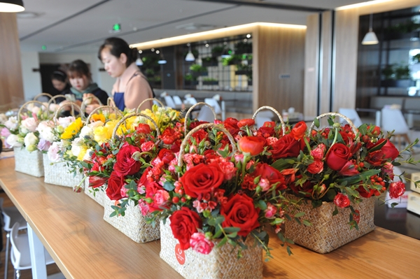 活動(dòng)現(xiàn)場(chǎng)花香四溢,女員工們手捧鮮花,仔細(xì)地裝點(diǎn)起自己的花束,表情專注,鮮花被一雙雙靈巧的手精心修剪后放入花籃內(nèi),呈現(xiàn)出最動(dòng)人的姿態(tài),創(chuàng)作出了一個(gè)個(gè)造型優(yōu)美、花團(tuán)錦簇、色彩活潑、穿插和諧的插花作品,現(xiàn)場(chǎng)氣氛溫馨浪漫,歡聲笑語響成一片。