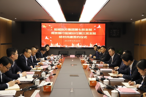 本次雙方黨支部結(jié)對共建的簽訂,旨在創(chuàng)新基層黨建工作思路,探索基層黨建發(fā)展的新方法和新舉措,為對方取長補短、互相學習、相互促進、共同提高,奠定堅實基礎,也為南京銀行鹽城分行、鹽城東方集團基層黨建工作的開展打造新亮點。