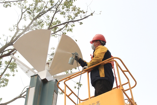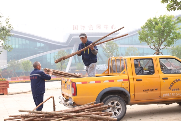 在國(guó)際會(huì)展中心場(chǎng)館升級(jí)改造的同時(shí),會(huì)展中心廣場(chǎng)也進(jìn)行了改造建設(shè)。包括道路出新、路燈翻新、樓宇亮化、提升綠化等改造項(xiàng)目。連日來(lái),東方市政工作人員徹夜對(duì)會(huì)展中心西側(cè)環(huán)形道路進(jìn)行升級(jí)改造為瀝青路面;東方安通按要求將會(huì)展中心100多桿景觀燈上破舊的道旗拆除并扶正,排查線路完善亮化,更換新燈罩。完成會(huì)展中心樓宇亮化維修并更換6處射燈燈管。同時(shí),對(duì)周邊6處公交站臺(tái)及45根人行道燈油漆出新,校正會(huì)展中心周邊路牙100多處,更換雨水篦子2處,人行道荷蘭磚7處;在提升會(huì)展中心西廣場(chǎng)綠化工程中,東方園林工作人員擴(kuò)建樹池后,新栽植49棵香樟,擺放、栽植草花4800平方米,增設(shè)75個(gè)花箱,花箱內(nèi)栽植高桿女貞、紅葉石楠、雞爪槭等。在樹木花草的點(diǎn)綴下,打造出層次分明的景觀效果,為中心廣場(chǎng)增添明艷的色彩。改造完成后,會(huì)展中心廣場(chǎng)將成為市民游客散步、觀賞夜景的又一理想選擇。