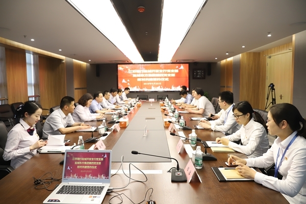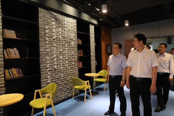 簽約活動前,王成林帶領(lǐng)第四支部黨員一起陪同江蘇銀行的黨員同志參觀了東方集團二樓的黨群活動中心。