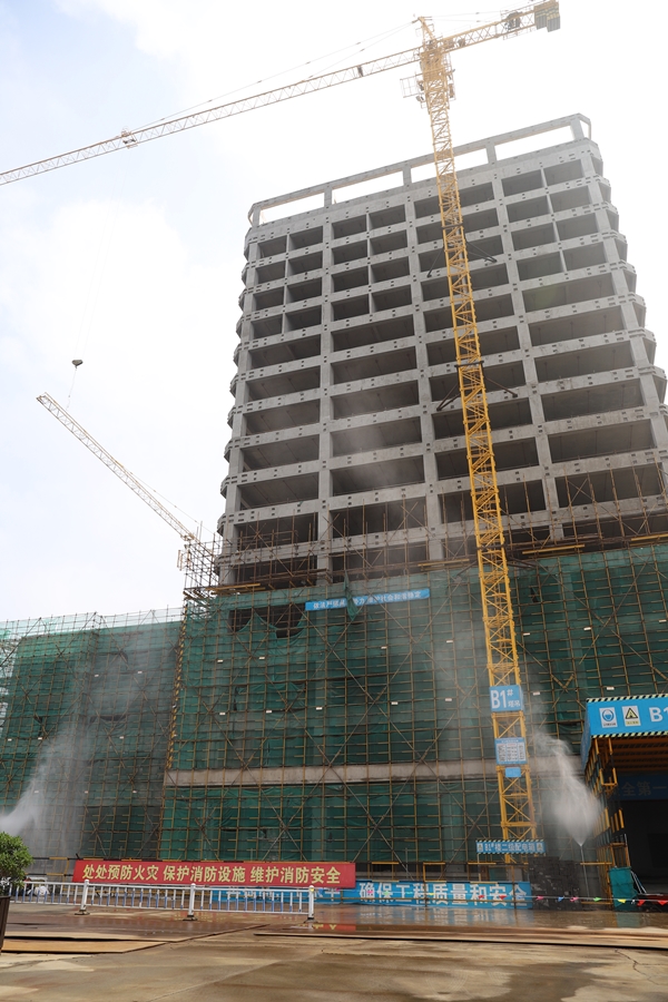在燕舞·亞朵酒店裝修項(xiàng)目施工現(xiàn)場(chǎng),只見運(yùn)輸建筑垃圾的車輛正在有序進(jìn)出,施工出入口霧炮機(jī)正在噴灑水霧降塵,該項(xiàng)目至上個(gè)月開工以來,在對(duì)質(zhì)量安全和揚(yáng)塵進(jìn)行嚴(yán)格管控的同時(shí),施工單位一著不讓快建設(shè),確保酒店年底前裝修完工,明年4月份正式開業(yè);未來科技城施工現(xiàn)場(chǎng)內(nèi),十幾個(gè)噴淋頭正在進(jìn)行霧化降塵,一臺(tái)霧炮車正在施工主干道上來回灑水,據(jù)悉目前一期基金大廈正緊鑼密鼓開展內(nèi)部裝修,8月底前正式交付給市財(cái)政局,二期D1—D4、B1樓已經(jīng)封頂,即將進(jìn)行幕墻施工,B2、B3樓將在8月底前封頂;北師大鹽城附校初中、高中部現(xiàn)場(chǎng)正在馬不停蹄的進(jìn)行水電安裝以及智能化、附屬設(shè)施等施工,保證8月底前4幢教學(xué)樓、宿舍樓如期竣工,9月初開學(xué)正式投用;東方污水處理廠內(nèi)各水池正在按序進(jìn)行污水凈化,據(jù)東方水務(wù)公司副總經(jīng)理沈效偉介紹,目前正在試運(yùn)行的一條生產(chǎn)線每日污水處理量達(dá)到3萬噸,待該項(xiàng)目全部投運(yùn)后,每日污水處理能力將提升到8萬噸,對(duì)打造環(huán)境優(yōu)美、生態(tài)宜居的綠色經(jīng)開區(qū)具有重要意義……