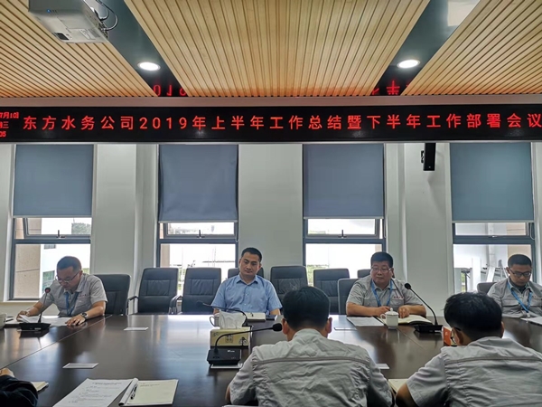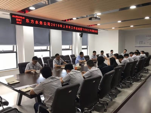 7月10日上午9點,江蘇東方水務公司組織2019年上半年工作總結(jié)暨下半年工作部署會議,東方集團副總經(jīng)理、東方水務總經(jīng)理王建旭及水務公司全體員工參加了本次會議,會議由水務公司副總經(jīng)理沈效偉主持。
