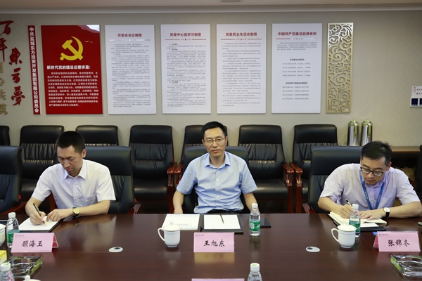 8月1日下午,深圳市宏創(chuàng)威科技有限公司總經(jīng)理王婷一行到我司考察交流。集團(tuán)副董事長、總經(jīng)理王旭東在集團(tuán)11樓東會議室熱情接待了王婷一行。