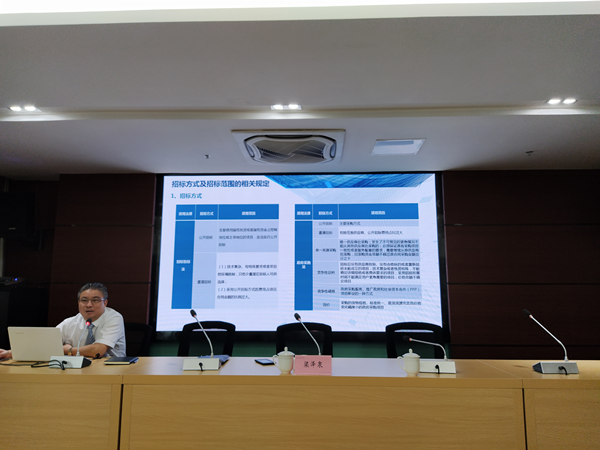 會(huì)上,梁澤泉主要通過(guò)招投標(biāo)的法律法規(guī)及相關(guān)知識(shí)、招標(biāo)文件主要條款及合同條款的注意事項(xiàng)與投訴點(diǎn)及相關(guān)事項(xiàng)(案例)等幾個(gè)方面深入淺出的講解。