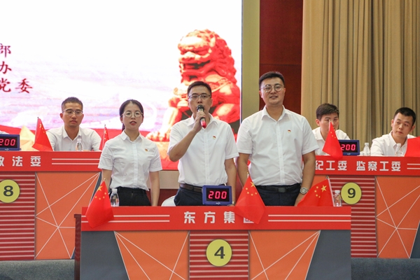 在“學(xué)習(xí)新思想·我與祖國(guó)共成長(zhǎng)”知識(shí)競(jìng)賽中,由集團(tuán)黨委委員華小軍、東方地產(chǎn)公司薛清華、人力資源管理部包金金組成的東方集團(tuán)代表隊(duì),經(jīng)過(guò)激烈的角逐,最終榮獲三等獎(jiǎng);在“我和我的祖國(guó)”主題演講比賽中,區(qū)人力資源公司李其森憑借題為《堅(jiān)守初心、奮斗前行》的精彩演講,進(jìn)入最后的決賽,并獲得三等獎(jiǎng)榮譽(yù)。