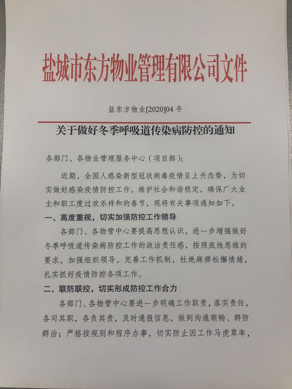 春節(jié)臨近,新型冠狀病毒卻來勢洶洶,各區(qū)域的疫情牽動(dòng)著東方物業(yè)全體員工和廣大業(yè)戶的心。作為防控第一線,東方物業(yè)快速反應(yīng),科學(xué)應(yīng)對,全力以赴開展疫情防控行動(dòng),確保全體員工和廣大業(yè)戶度過一個(gè)安定、祥和的春節(jié)。