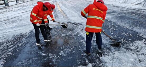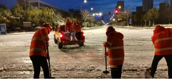 為應對惡劣天氣的影響,東方安通公司迅速安排落實生產(chǎn)值班工作,加強值班力量,快速應對惡劣天氣下的道路設施的異常情況并落實五大隊交辦的保障任務。風雪之中,對道路路面進行巡查,對信號燈、誘導屏、護欄等設施進行排查,聯(lián)系落實搶修隊伍人員,人員調(diào)動情況以及保障物資的準備情況。排查活動直至夜間雪停結(jié)束,次日凌晨,東方安通員工利用自身優(yōu)勢,快速變身成為除雪大軍,開著工程車,揮著鐵鍬,走上街頭除雪撒鹽,保障行人安全通行。