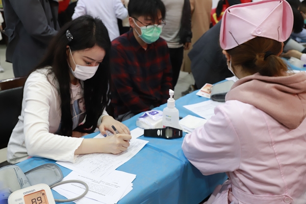 上午9點(diǎn)半,在陽光世紀(jì)園東門道德大講堂內(nèi),長長的獻(xiàn)血隊(duì)伍中,有黨員干部、團(tuán)員青年和職工群眾,有第一次獻(xiàn)血的“新人”,也有連續(xù)多年獻(xiàn)血的志愿者。在工作人員的引導(dǎo)下有序填寫登記表、體檢、化驗(yàn)、采血……