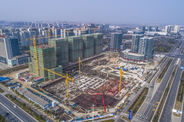 截至目前,未來科技城一期已竣工投用,吸引了基金大廈、興業(yè)銀行、黃海濕地研究院等優(yōu)質單位、企業(yè)入駐;二、三期工程方面,土建、內裝、幕墻、亮化、智能化、附屬、暖通、電梯等工種全面開花、齊頭并進,力保項目如期建成交付。