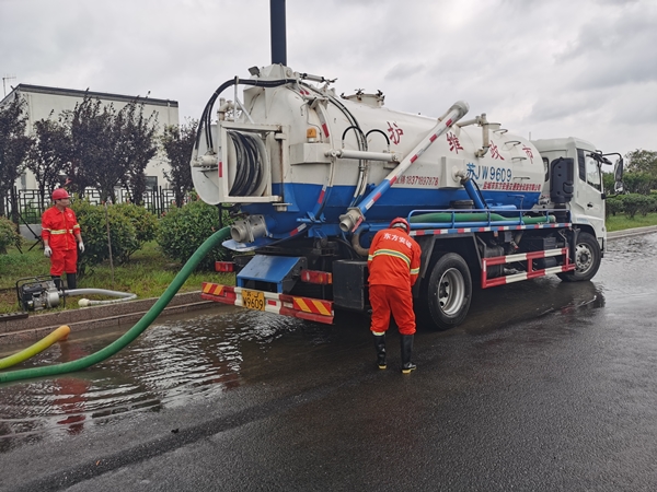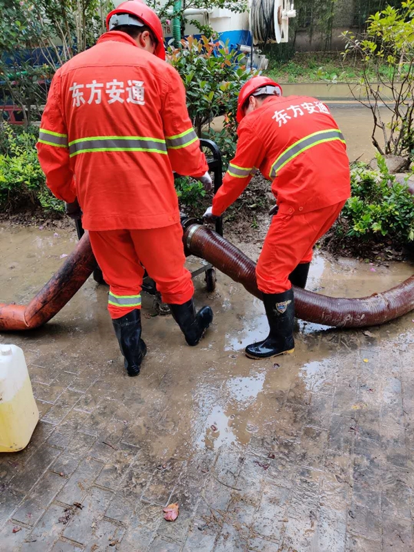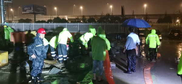 為切實保障經(jīng)開區(qū)重大項目安全有序施工,市民出行便利,6月28日夜間,東方安通公司組織5輛工程車、15名員工在暴雨中對區(qū)內(nèi)185公里市政道路、20余公里中隔帶護欄、165個路口信號燈進行巡查,排查道路積水情況進行梳理匯總。6月29日凌晨2點鐘,接到區(qū)內(nèi)重大項目SK-I的防汛任務(wù)后,東方安通團隊組織應(yīng)急隊伍和搶排設(shè)備緊急趕往現(xiàn)場,協(xié)助項目工地場地做好排水安全工作。