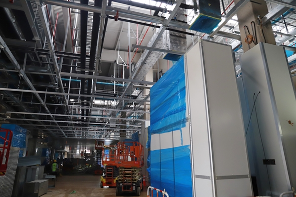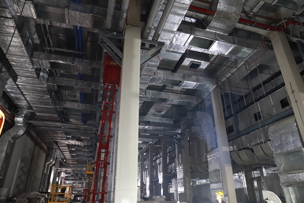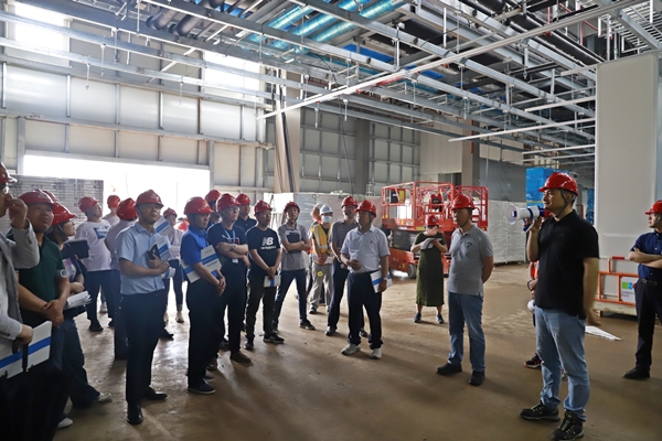 在總承包中鐵建工集團(tuán)建筑安裝有限公司的現(xiàn)場負(fù)責(zé)人的引導(dǎo)下,東方集團(tuán)一行人參觀學(xué)習(xí)了該項(xiàng)目的電極棟、組裝棟、活性棟等主生產(chǎn)廠房以及其他輔助用房。項(xiàng)目負(fù)責(zé)人就各觀摩區(qū)域的亮點(diǎn)向觀摩人員作一一介紹,該工程的建筑形式為鋼結(jié)構(gòu)建筑,以電極棟一層為例,天花板上部共有21個系統(tǒng)機(jī)電管線,管線布置及其復(fù)雜,為了解決管線碰撞問題,項(xiàng)目指揮部開展BIM管線綜合深化設(shè)計。項(xiàng)目部合理整潔衛(wèi)生的施工場地、醒目的標(biāo)語標(biāo)識牌、規(guī)范的施工工藝、文明安全的施工氛圍,給前來觀摩的人員留下深刻的印象。