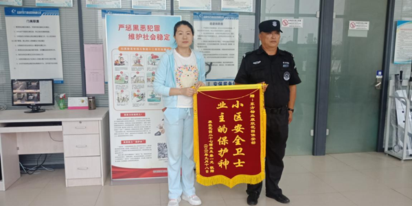“真是太感謝你們幫我找回孩子了!是你們?cè)谖曳浅o(wú)助的時(shí)候幫助了我。”9月17日下午3點(diǎn),鹽城經(jīng)開(kāi)區(qū)康欣花園物管中心收到了來(lái)自小區(qū)業(yè)主王女士送來(lái)的印有“小區(qū)安全衛(wèi)士 業(yè)主的保護(hù)神”字樣的錦旗,表達(dá)對(duì)保安部蔡安國(guó)短時(shí)間內(nèi)幫助她找回走失孩子的感激之情。