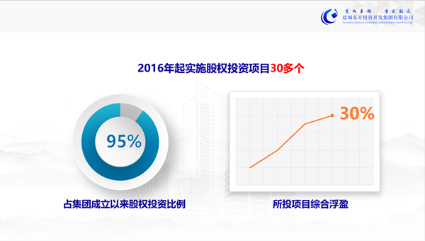 自2016年以來,鹽城東方集團(tuán)先后實(shí)施股權(quán)投資項(xiàng)目30多個(gè),占集團(tuán)成立以來的95%以上,所投項(xiàng)目綜合浮盈30%以上。這是股權(quán)投資市場復(fù)雜多變,金融監(jiān)管日益趨緊,國資審批更加規(guī)范的宏觀大環(huán)境下,主動對標(biāo)“一流”,苦練內(nèi)功,建章立制,促進(jìn)了所投項(xiàng)目的穩(wěn)健收益。