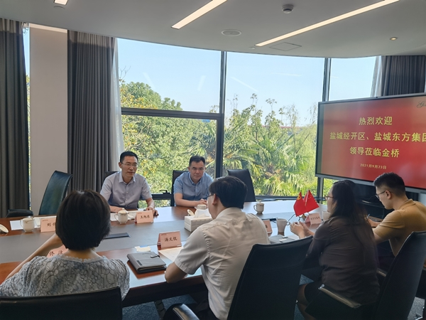 9月23日,鹽城東方集團(tuán)黨委書記、董事長、總經(jīng)理王旭東,在上海出席“鹽城經(jīng)濟(jì)開發(fā)區(qū)基金招商推介會”期間,帶隊(duì)密集拜訪了金橋股份、上海久奕資本等6家知名基金管理公司,并就其推薦的擬投資落戶項(xiàng)目深入交流。金橋股份總經(jīng)理湯文侃、久奕資本董事長王曉明等6家投資機(jī)構(gòu)主要負(fù)責(zé)人接待并組織座談。