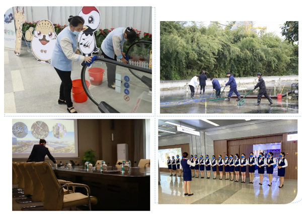 在籌備時(shí)間緊迫的前提下,作為全國(guó)物業(yè)協(xié)會(huì)成員單位的鹽城東方物業(yè)公司,金牌服務(wù)讓人如沐春風(fēng)。東方物業(yè)100余名工作人員齊心協(xié)力,每天從早上6點(diǎn)一直忙碌到深夜12點(diǎn),盡心盡責(zé)維護(hù)場(chǎng)館整潔有序?;顒?dòng)會(huì)場(chǎng)中,20位客服訓(xùn)練有素的禮儀服務(wù),形成了一道亮麗的風(fēng)景線;幾十位保潔人員,分散在各個(gè)角落,隨時(shí)保持場(chǎng)地干凈整潔;保安人員引導(dǎo)車輛停放井然有序,對(duì)場(chǎng)館進(jìn)入人員證件核驗(yàn)、雙碼檢查、體溫檢測(cè)等工作;幕后的工程人員時(shí)刻監(jiān)測(cè)保障設(shè)施設(shè)備正常運(yùn)行;為美化場(chǎng)館外部氛圍,東方物業(yè)調(diào)集人員使用消防水帶采用人工洗刷的模式,讓噴泉池底恢復(fù)潔凈狀態(tài)。