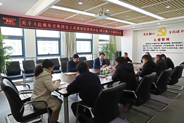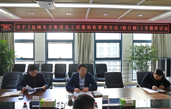 12月17日,在鹽城東方集團1115會議室,集團黨委委員、副總經(jīng)理王成林牽頭召開《鹽城東方集團完工質(zhì)量驗收管理辦法(修訂稿)》專題研討會。集團工程管理部、招標(biāo)部、審計部、東方建設(shè)、東方市政、東方地產(chǎn)等部門負(fù)責(zé)同志參加研討。