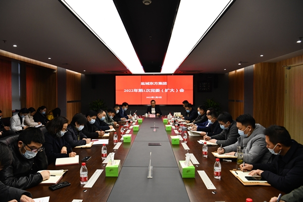 今天上午,鹽城東方集團在集團七樓1號會議室召開黨委(擴大)會議,集團黨委書記、董事長、總經(jīng)理王旭東主持會議并講話。集團黨委領導班子成員出席會議,集團總會計師列席會議,中層以上人員、子公司經(jīng)營層參加會議。