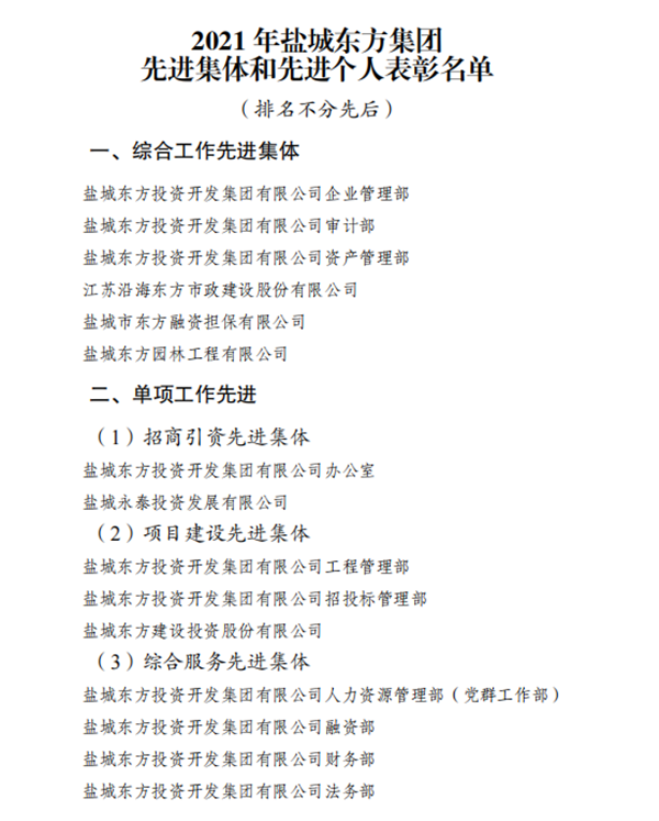 這一年,我們主動(dòng)作為、加強(qiáng)宣傳,獲得了更多的社會(huì)認(rèn)可,為集團(tuán)創(chuàng)造一流國(guó)企增添了強(qiáng)勁動(dòng)能。2021年11月20日,在城投之家等權(quán)威機(jī)構(gòu)發(fā)布的《江蘇地方政府投融資平臺(tái)轉(zhuǎn)型發(fā)展研究報(bào)告》中闡明,鹽城東方集團(tuán)轉(zhuǎn)型業(yè)績(jī)作為鹽城唯一一家國(guó)企,首次躋身全省地級(jí)市投融資平臺(tái)榜單前十,《新華日?qǐng)?bào)》《鹽阜大眾報(bào)》《鹽城工作》等主流媒體全年推送近200篇報(bào)道,傳遞東方好聲音。