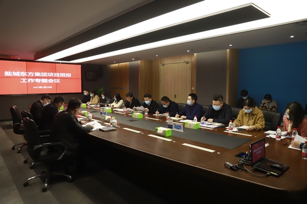 今天下午,鹽城東方集團(tuán)在7樓一號會議室組織召開項目招投工作專題會議。集團(tuán)黨委書記、董事長、總經(jīng)理王旭東主持會議并部署工作。集團(tuán)黨委委員、紀(jì)委書記華小軍,集團(tuán)黨委委員、副總經(jīng)理孫為軍出席會議。集團(tuán)招商條線、投資部、督查辦人員參加會議。