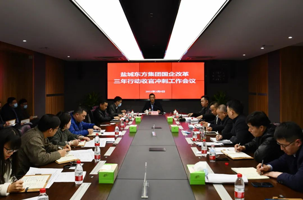 3月8日下午,鹽城東方集團在集團7樓1號會議室召開專題會議,全面回顧總結國企改革三年行動工作推進情況,謀劃部署各項掃尾沖刺工作目標和措施。集團黨委書記、董事長、總經理王旭東主持會議并部署工作,集團黨委委員、紀委書記華小軍,黨委委員、副總經理孫為軍,總會計師聶偉虎出席會議。集團各部門、子公司主要負責人參加會議。