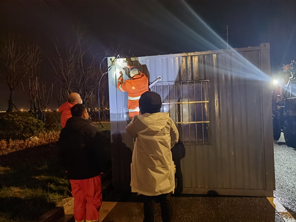 19日下午,根據(jù)區(qū)主要領導關于增設雨棚、監(jiān)控攝像頭、進出口隔離帶與值守集裝箱的整改意見,他們一著不讓、一刻不拖,在接近零下的低溫環(huán)境中,冒著瓢潑的凍雨和冰雹,繼續(xù)打足人手、上足機械、保足物資,又是一夜奮戰(zhàn),又是一場硬仗,直至全面完成。