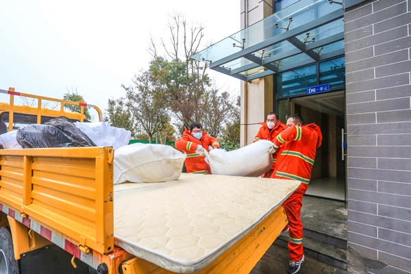 協(xié)調(diào)騰空、組裝床位、調(diào)試水電、門鎖檢修等,連夜緊急采購配套物資,布置隔離房間……原本需要3天的工作量,突擊隊僅用20個小時便完成166間隔離房間改造布置任務(wù)。3月21日晚9點半起,部分隔離人員已陸續(xù)入住韓國社區(qū)D幢隔離點。
