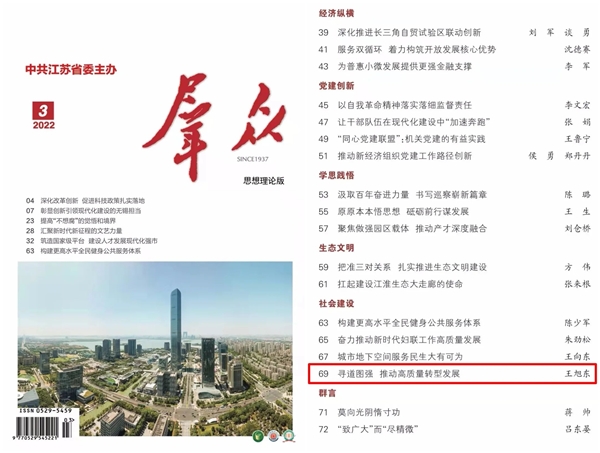 近日,由中共江蘇省委主辦的《群眾》雜志(思想理論版)2022年3月刊“社會建設(shè)”欄目刊登王旭東董事長署名文章——《尋道圖強(qiáng) 推動高質(zhì)量轉(zhuǎn)型發(fā)展》。