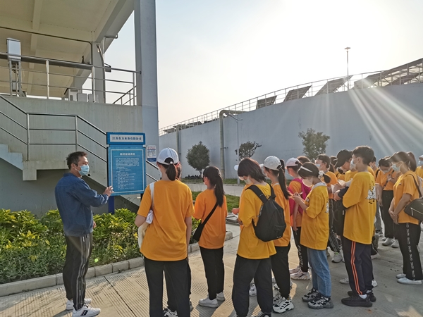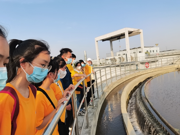 來到污水處理現(xiàn)場,師生們實(shí)地參觀了除臭系統(tǒng)、生化池、二沉池、水解酸化池、磁混凝澄清池等一系列污水處理設(shè)備設(shè)施。工作人員通俗易懂地為師生們講解污水從進(jìn)廠到出廠期間每一道工藝流程,讓師生們清晰地了解了原水是如何經(jīng)過層層過濾、消毒、凈化等工藝流程,最終實(shí)現(xiàn)達(dá)標(biāo)排放。參觀期間,學(xué)生們好奇心十足,不斷提問,認(rèn)真記錄相關(guān)污水處理知識,工作人員一一進(jìn)行耐心講解。通過“零距離”觀察比較污水凈化處理前后的水質(zhì)變化,解開了“污水變清”的秘密。親眼見證污水從渾濁不清變成一汪汪清水時(shí),師生們不由發(fā)出了陣陣贊嘆。