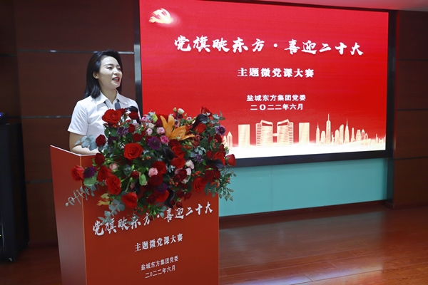 今年是黨的二十大召開之年,也是“十四五”規(guī)劃實施關鍵之年。為迎接和學習宣傳貫徹黨的二十大,全面落實全國和省、市組織部長會議精神,打造廣大黨員寓教于樂課堂。6月13日下午,鹽城東方集團黨委在1012會議室組織開展了“黨旗映東方·喜迎二十大”主題微黨課大賽。集團黨委書記、董事長、總經(jīng)理王旭東出席活動,特別邀請鹽城經(jīng)濟技術開發(fā)區(qū)組織部組織處王亞靜同志作為大賽評委之一。集團50余名黨員同志參加了此次活動。