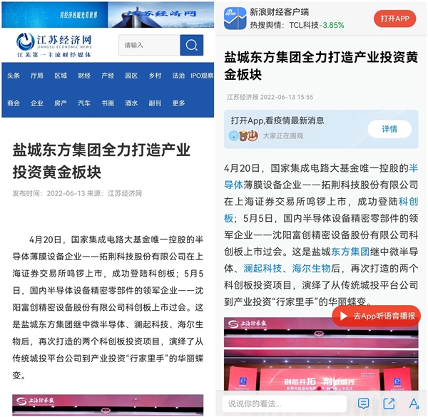 近日,《今日頭條》《交匯點》《新華報業(yè)網(wǎng)》《江蘇經(jīng)濟網(wǎng)》《新浪財經(jīng)》等多家主流媒體聚焦報道鹽城東方集團全力打造產(chǎn)業(yè)投資黃金板塊,持續(xù)提升核心競爭力和盈利能力,助推國企實現(xiàn)高質(zhì)量跨越式發(fā)展。