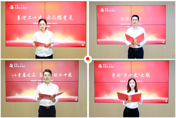 《我們愛(ài)你啊,中國(guó)》《七律·長(zhǎng)征》《以青春之名,喜迎黨的二十大》《母親的信——致敬向警予、趙一曼》……集團(tuán)各支部精心編排的10個(gè)朗誦作品依次展演。